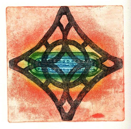 2015 ets eigendruk Dies de Jonge monumentaal op klein formaat beeld 15x15cm.