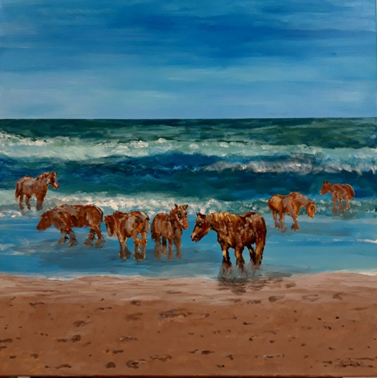 2020 Dies de Jonge "zeeuwse paarden 2" acryl op linnen 70x70 cm.