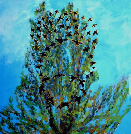 2020 Dies de Jonge "niet een zaam aan de top 2" acryl op linnen 70x70 cm.