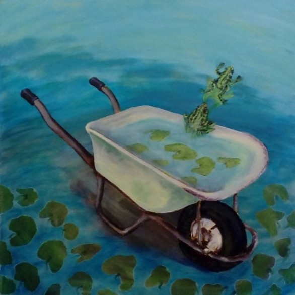 2017 Dies de Jonge "kruiwagen 1" acryl op linnen 60x60 cm.